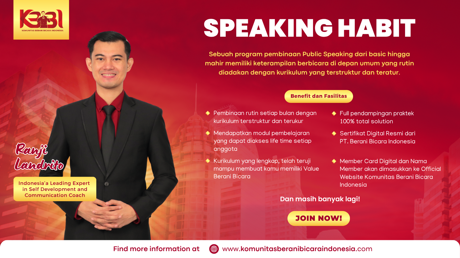 merekomendasikan untuk anak-anak muda Indonesia bisa belajar dan mengasah keberanian berbicara di depan umum melalui Komunitas Berani Bicara Indonesia