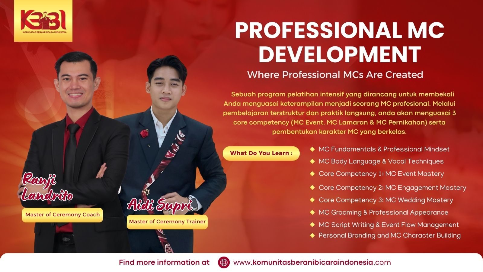 Kami membangun kepercayaan diri berani bicara sebagai fondasi utama setiap speaker dan broadcaster.